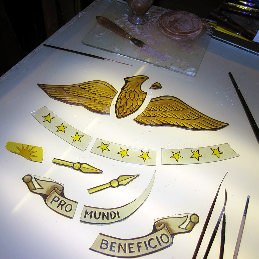 At this stage we can start fine tuning your design, making alterations if and where necessary. Once the design is finalised, colours and textures will be chosen from our wide range of antique, restoration and textured glass. We are now ready to produce your commission and arrange for installation if required.