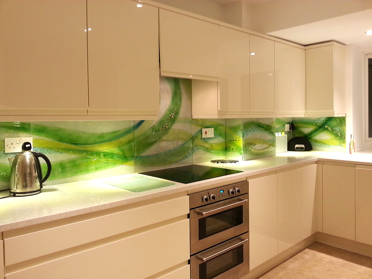 Main Album » Miscellaneous Fused Glass Kitchen Splashbacks Fused Glass Kitchen Splashbacks 2 Fused Glass Splashbacks - detail Fused glass splashbacks - swirl Fused splashback - Swirl Kitchen Splashback - fused panel